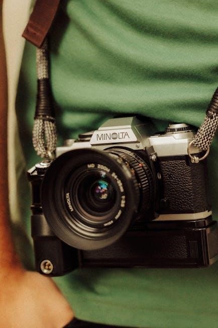 The manual further specifies film compatibility (135 film) and metering capabilities. Resources like The Manual Library provide access to these specifications, ensuring users understand the camera’s full potential. Understanding these features, as explained in the manual, unlocks the Minolta 7000’s capabilities for both amateur and experienced photographers.
